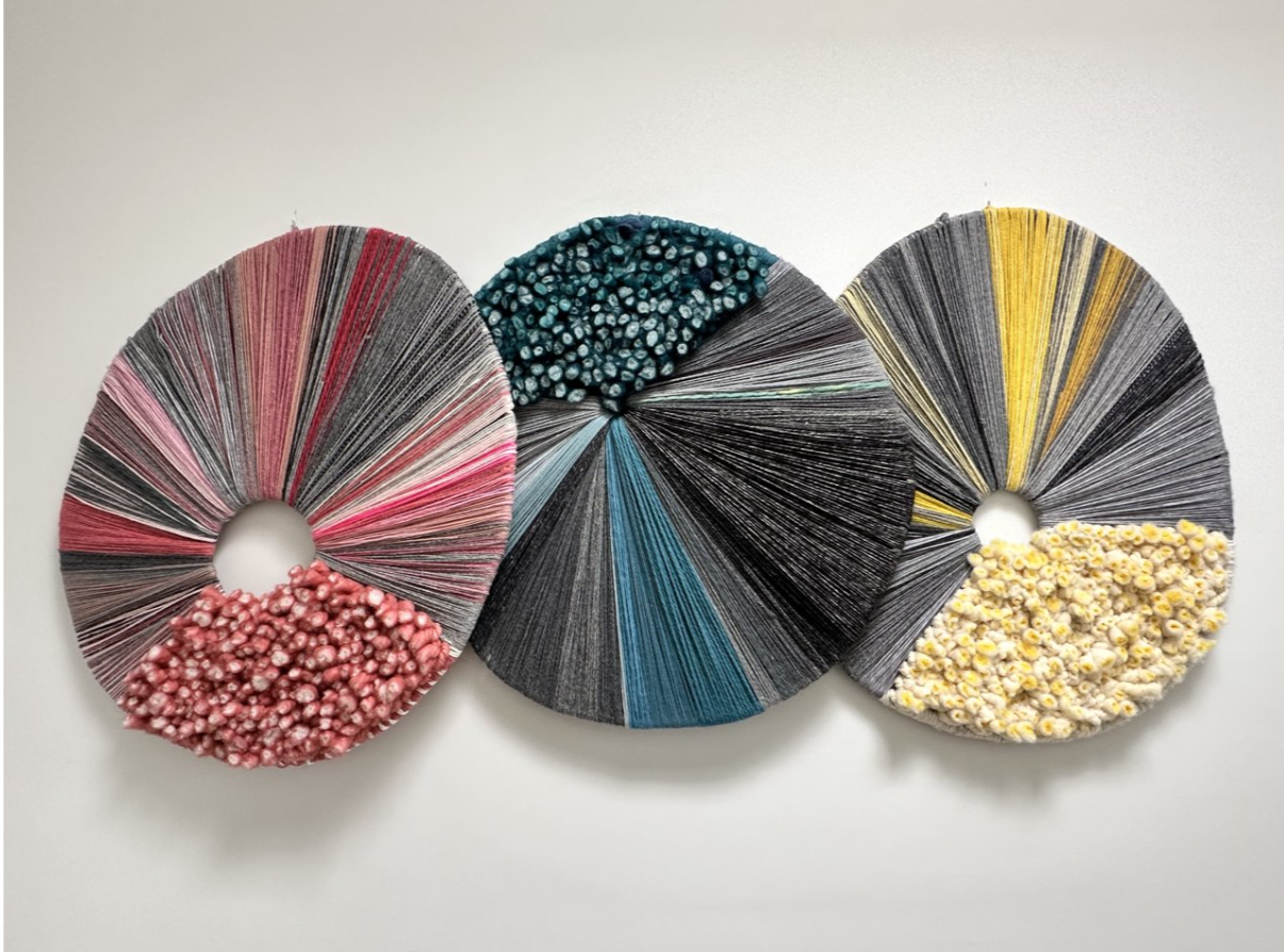 Her creative process begins with a color study in aquarelle on cotton rag paper, allowing her to explore tonal relationships before translating them into fiber-based compositions. Her work is part of private collections in Saint-Tropez, London, Spain, the Netherlands and the US and has been exhibited at venues including BIG ART in Amsterdam, Object Rotterdam and Onna House in Palm Beach. In addition to her studio practice, she is developing a series of sculptural pieces that incorporate handmade ceramic elements, expanding the tactile language of her fiber-based work.