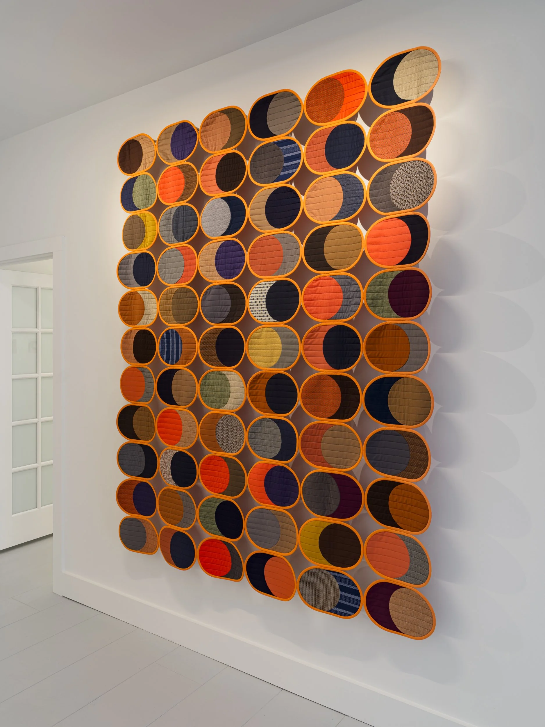 Cory Emma Siegler is a visual artist based in Brooklyn, NY. Engaging in a variety of media, including patchwork quilting, drawing, bookmaking and printmaking, Cory uses the grid as an underlying structure to create visual networks out of geometry, pattern, and color. Compositions are built out of simple shapes that become complex through the use of repetition, and achieve an overall unity and balance in their final form. Cory often repurposes worn out clothing, linens, and scraps into her textile pieces, which leads to surprising color and textural combinations, gives the fabric a new life and context, and imbues the final work with a material history and memory.