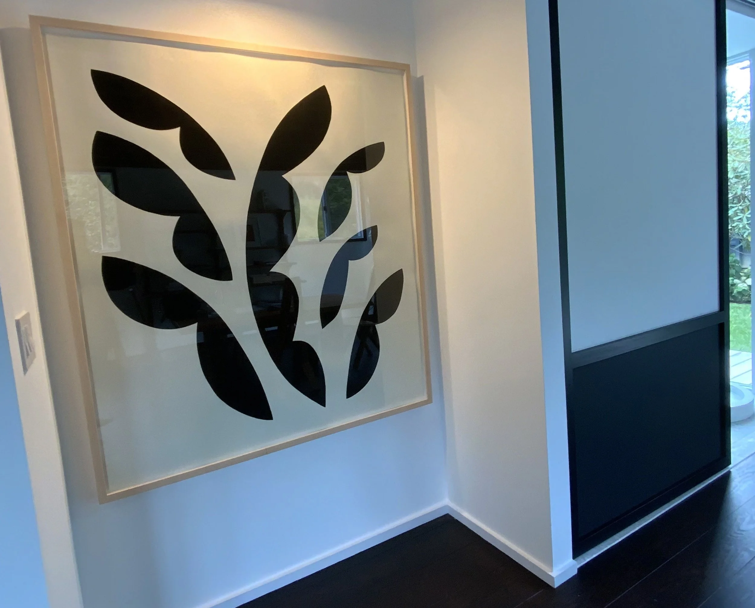 BLACK LEAVES ON WHITE, 2021. Gouache printing on paper.