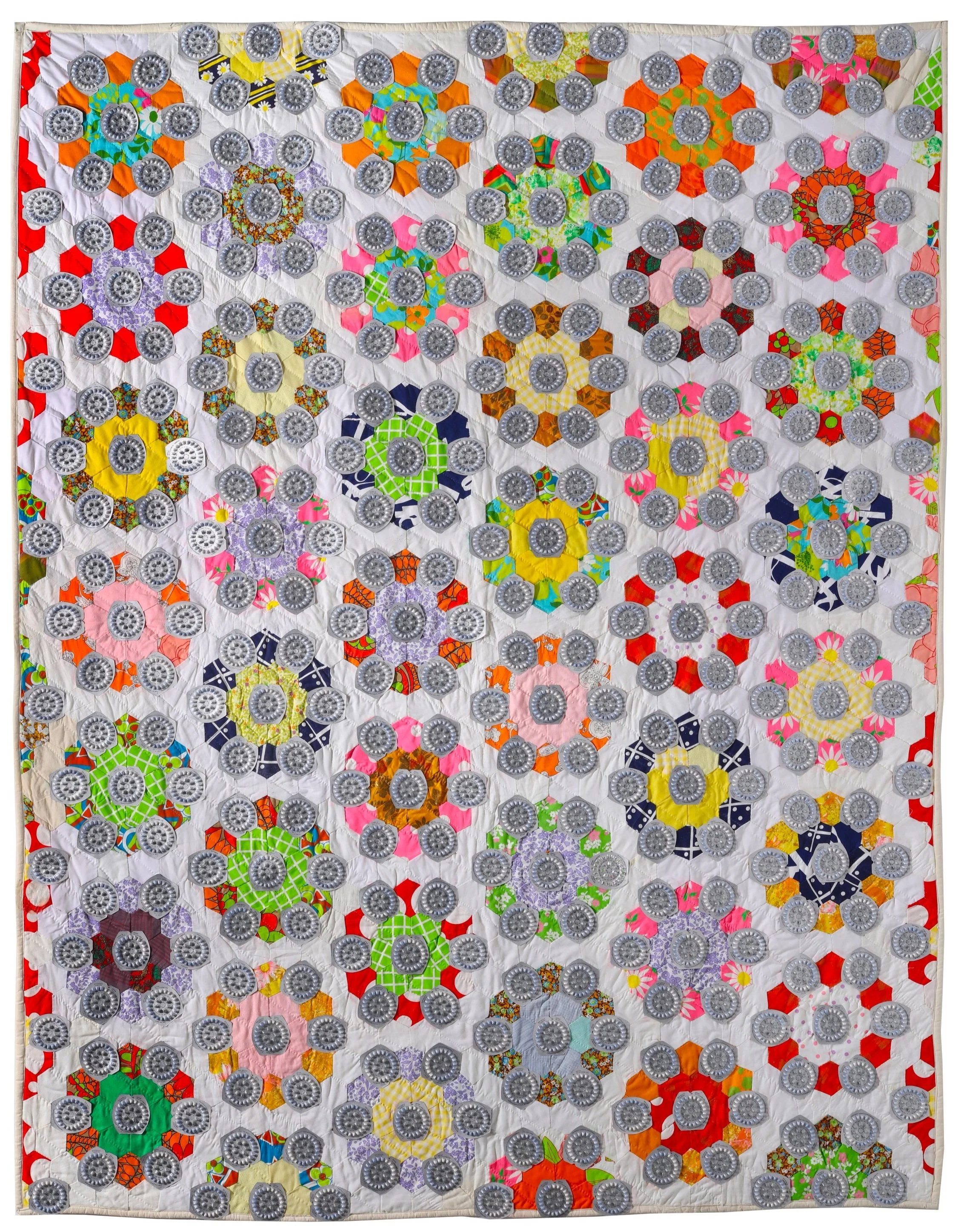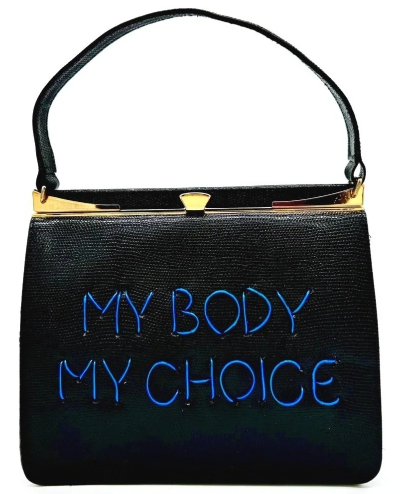 Michele Pred has created a large sculpture entitled Abortion is Healthcare featuring the Mifepristone and Misoprostol abortion pills. This piece is meant to draw attention to abortion rights in the United States. The exhibition will also showcase three handbags from Michele's renowned "Power of the Purse" series. These purses are adorned with phrases in neon light such as "Equality," "My Body My Choice," and "Vote" and are intended to serve as small-scale political billboards. Michele's artwork Sexual Revolution is a quilt from the 1960s that features a kaleidoscopic pattern adorned with 140 packs of birth control pills (totaling 3,920 pills). Jerelyn Hanrahan reclaims the pearl necklace from the nape of the 1950’s housewife, stringing colossal and lustrous orbs of spun aluminum to create a modern power symbol. Through tapestry, embroidery, quilting, and beading, each of these women weaves their personal experiences, history, and ancestry into artworks of conceptual force.